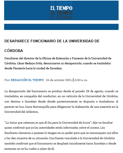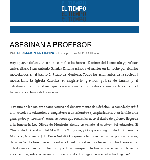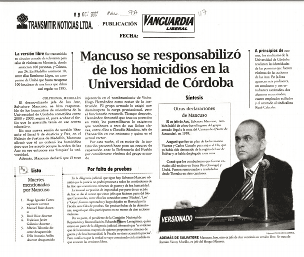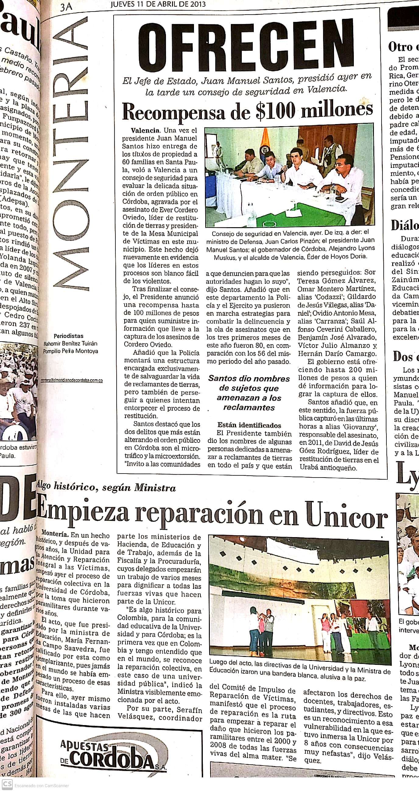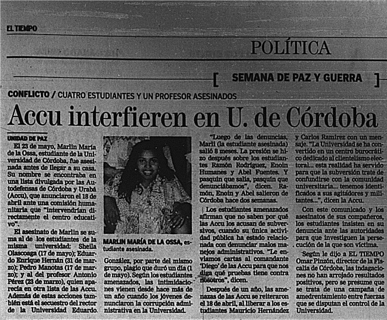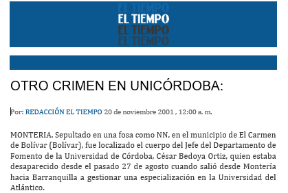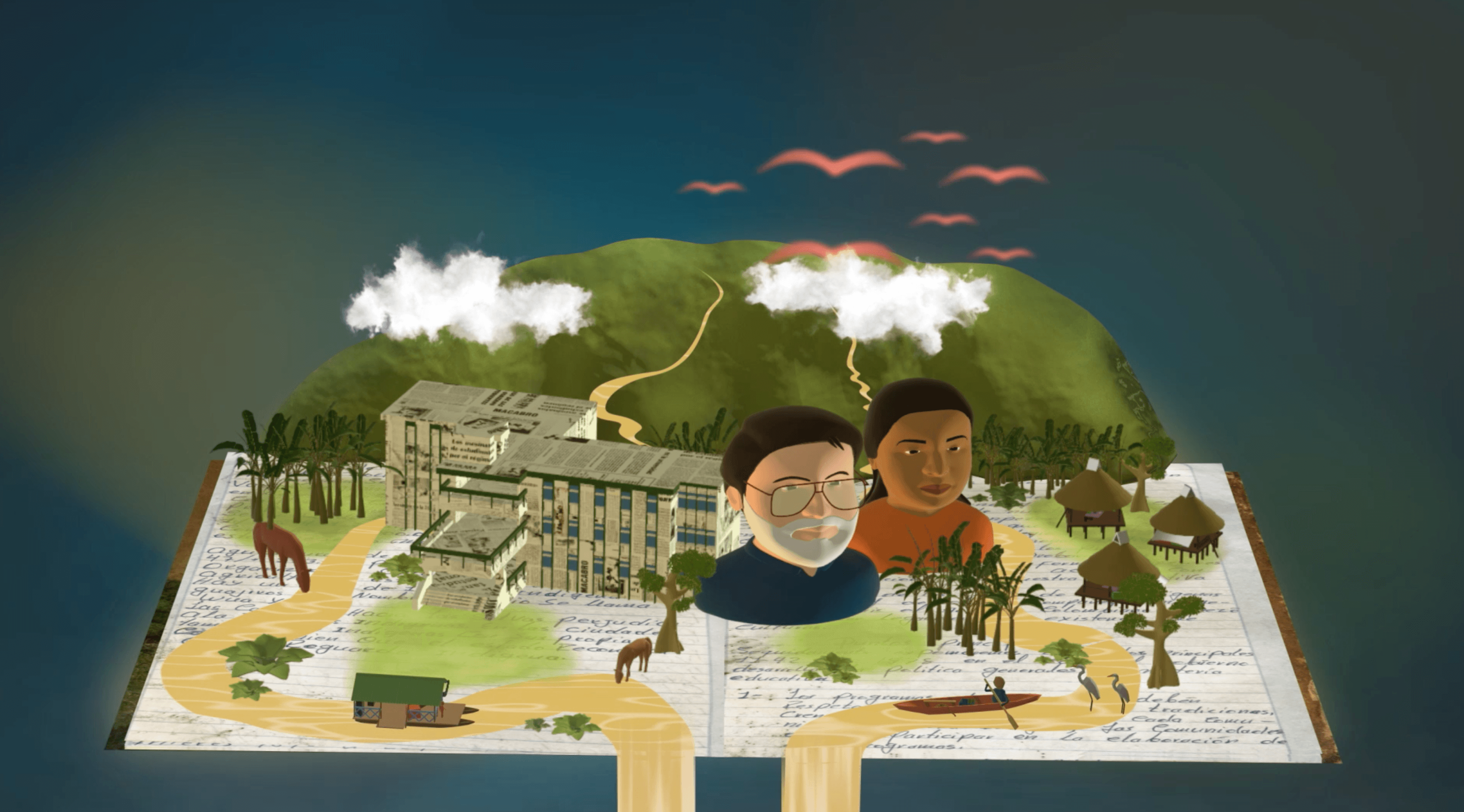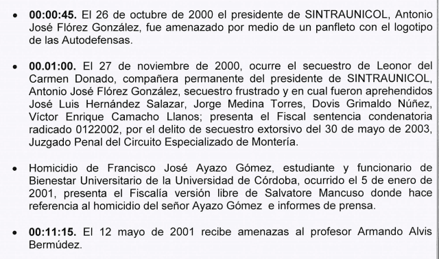 Esta animación del sitio muestra partes inéditas del cuaderno de Kimy Pernía, líder Embera Katío, asesinado. En la gráfica aparecen, ilustrados, el profesor de la Universidad de Córdoba, Alberto Alzate Patiño, asesinado, y de Martha Domicó, hija de Kimy, también asesinado.