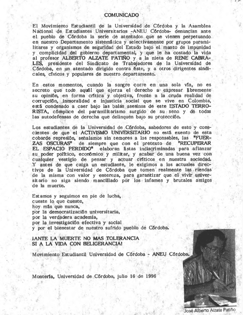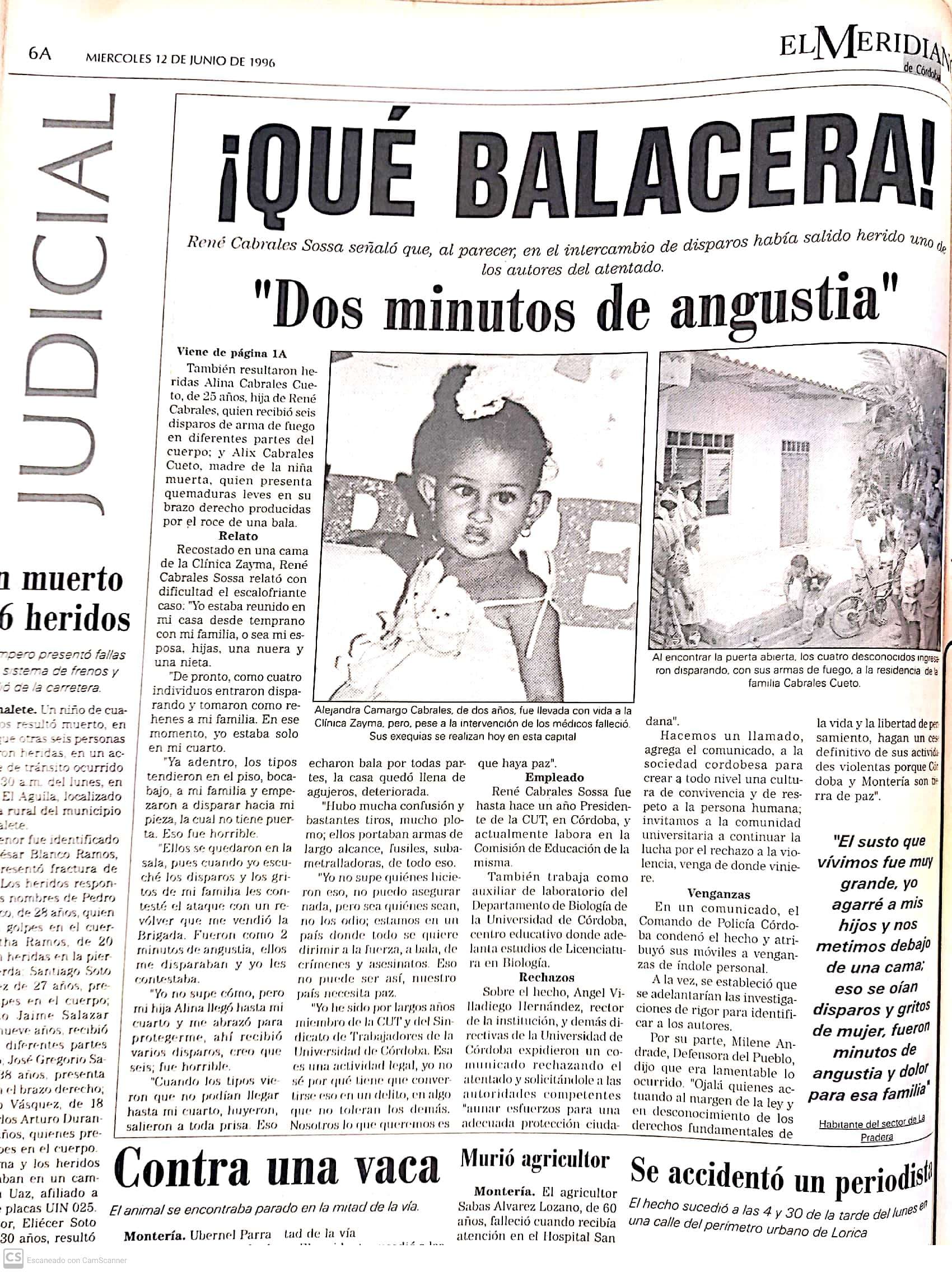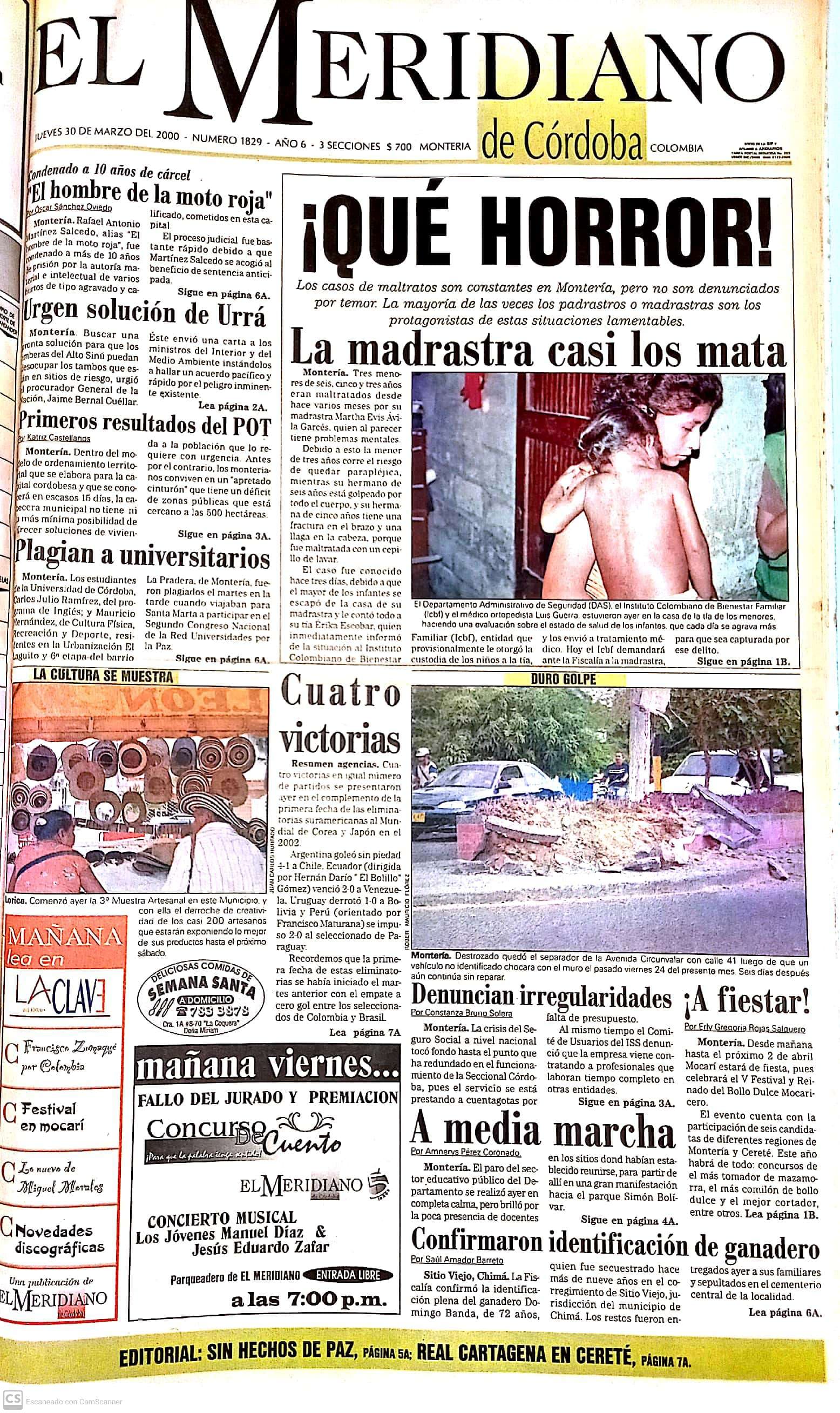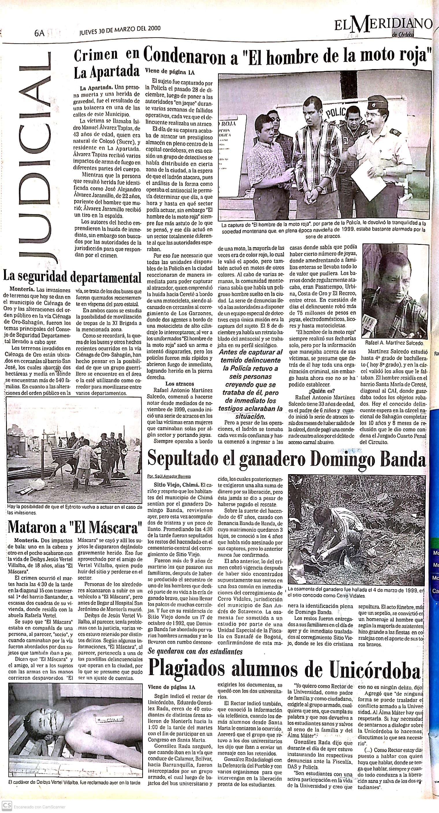 Esta animación del sitio muestra partes inéditas del cuaderno de Kimy Pernía, líder Embera Katío, asesinado. En la gráfica aparecen, ilustrados, el profesor de la Universidad de Córdoba, Alberto Alzate Patiño, asesinado, y de Martha Domicó, hija de Kimy, también asesinado.