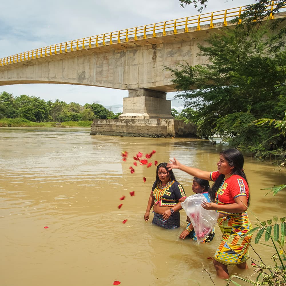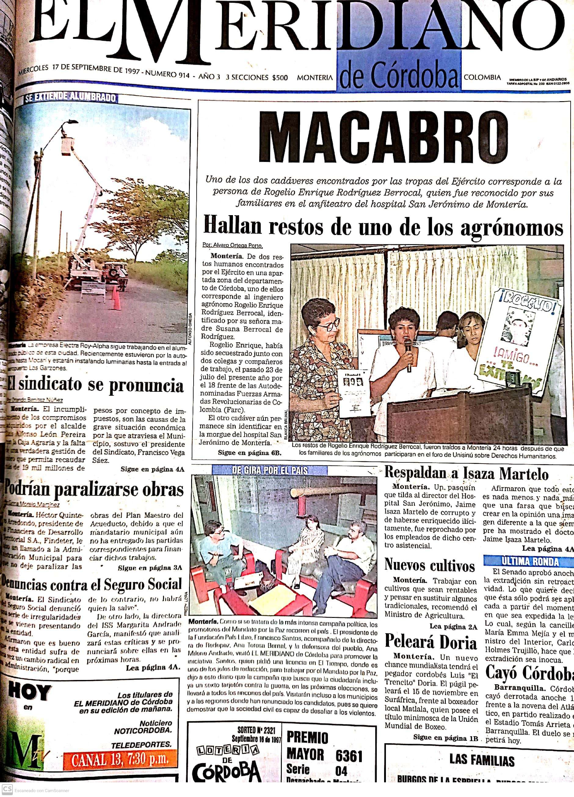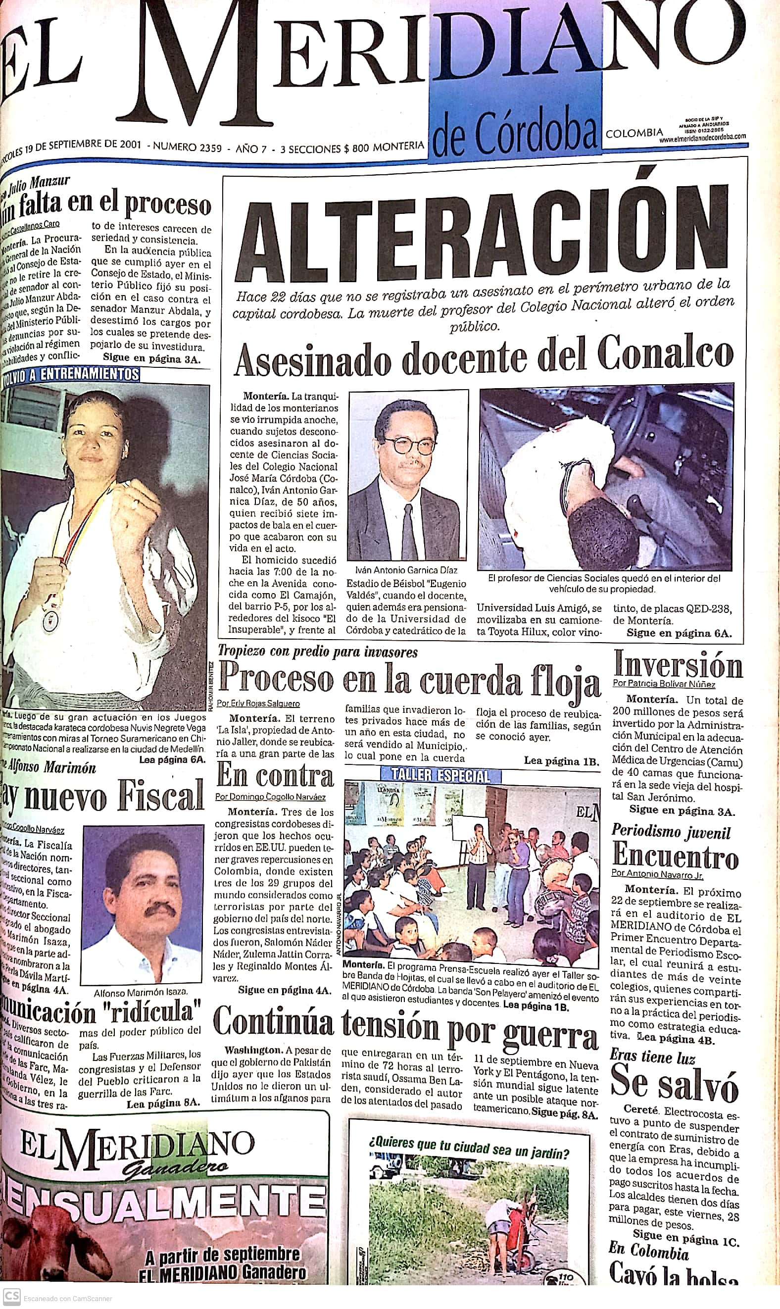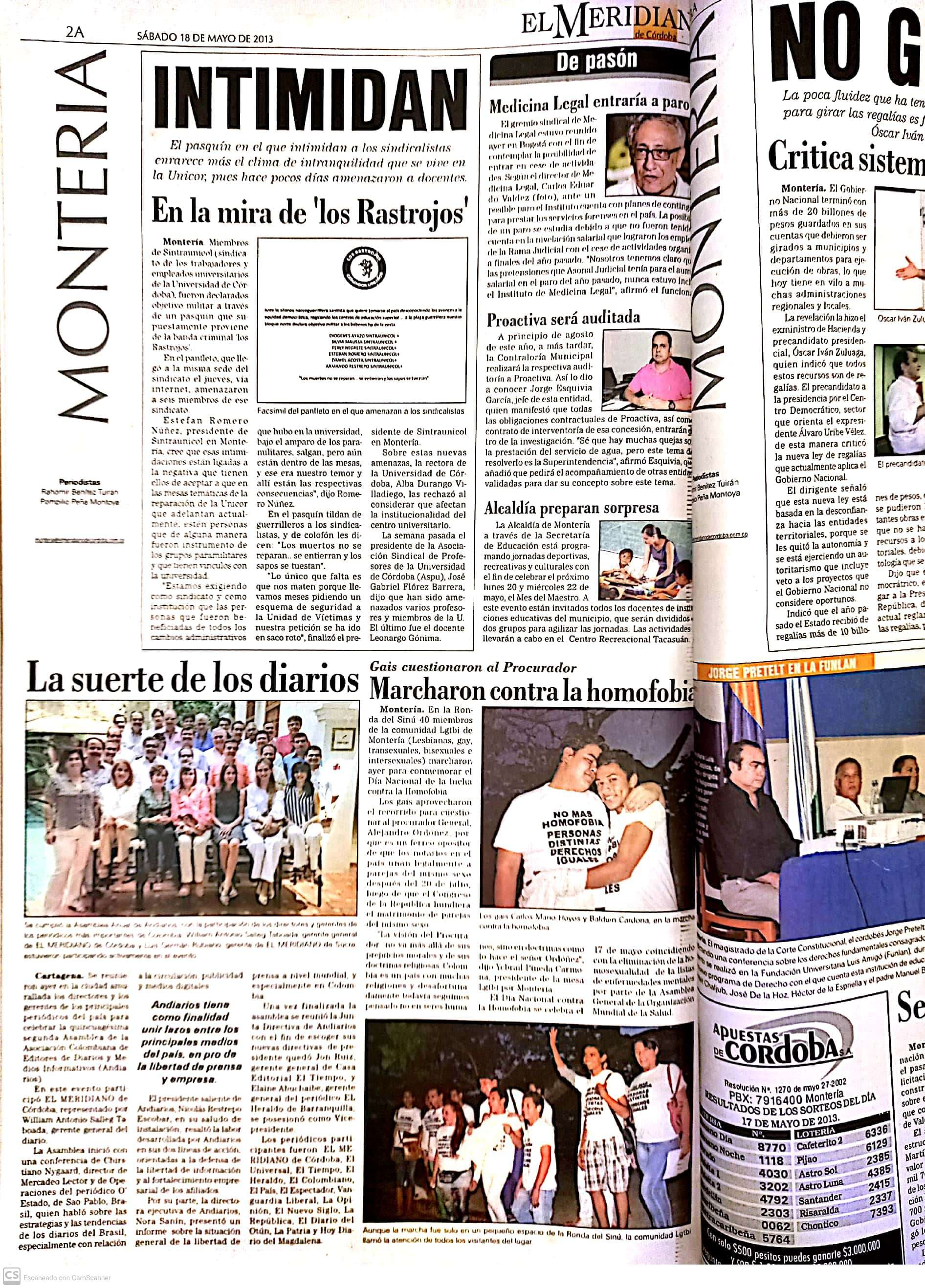 Esta animación del sitio muestra partes inéditas del cuaderno de Kimy Pernía, líder Embera Katío, asesinado. En la gráfica aparecen, ilustrados, el profesor de la Universidad de Córdoba, Alberto Alzate Patiño, asesinado, y de Martha Domicó, hija de Kimy, también asesinado.