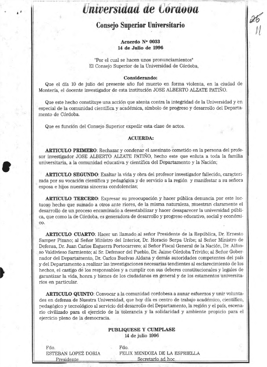 Este primer viaje al silencio de Córdoba comparte tres salas que explican el hilo que junta la violencia sufrida por el pueblo Embera Katio y la toma paramilitar a la Universidad de Córdoba: Sala audiovisual, sala de la palabra, sala del tiempo, y sala documental. Los hechos aquí reseñados en, esta, la primera exposición: “Matar el pensamiento crítico, historias de silencios” ocurrieron en distintas épocas entre los años 90 y la primera década del 2000.