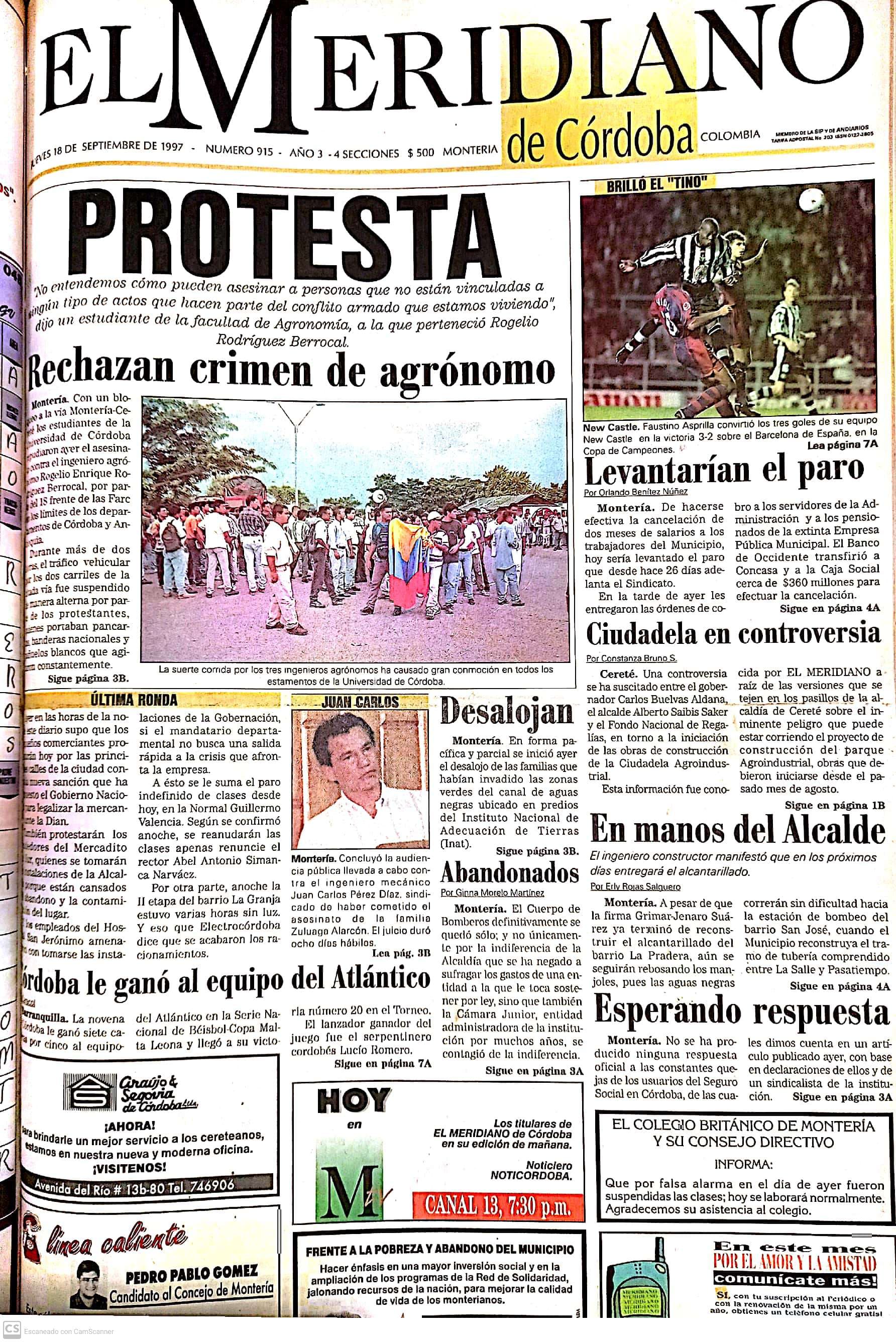 Protesta estudiantil de la Universidad de Córdoba frente al asesinato de uno de los tres ingenieros