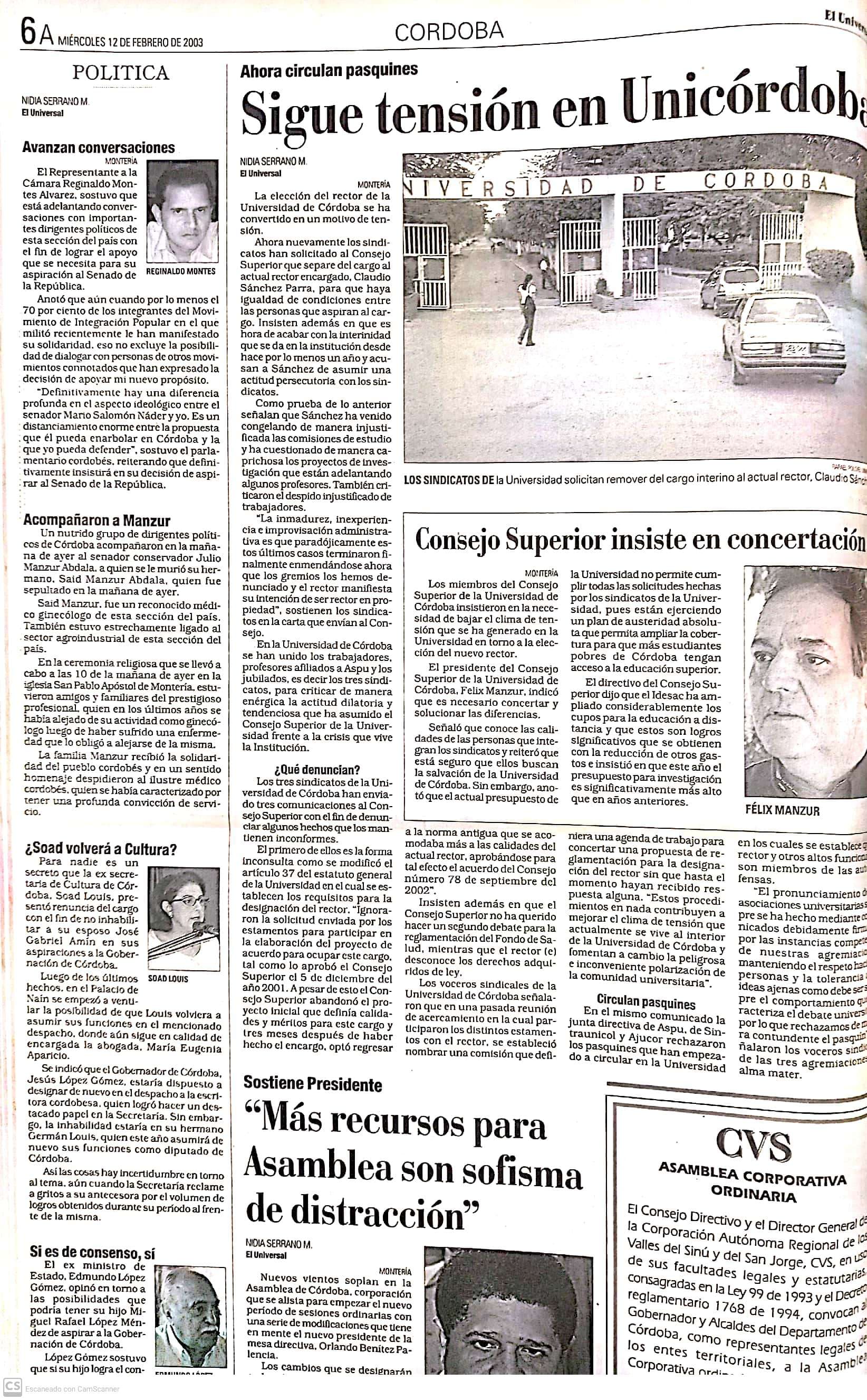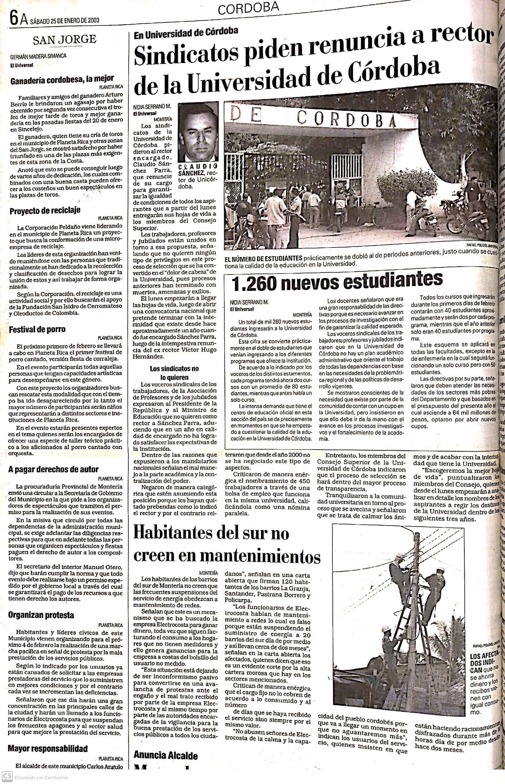 Sindicatos de la Universidad de Córdoba exigen renuncia del rector interino Claudio Sánchez Parra.